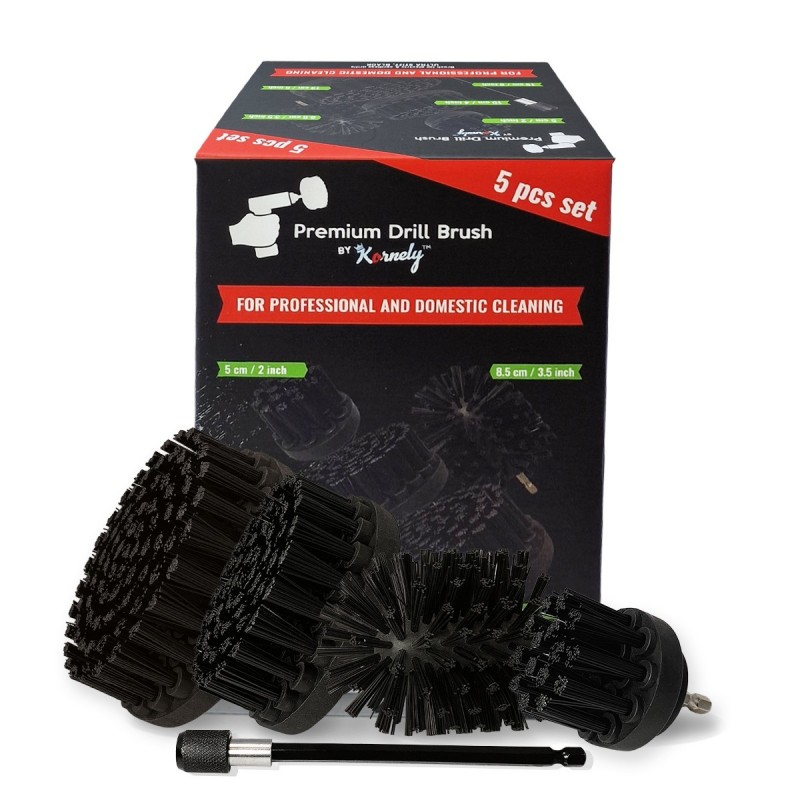 Kornely Premium Drill Brush Professional ir īpaši izveidots, lai ātri un izcili izpildītu dažādus tīrīšanas pienākumus. Augstākās kvalitātes urbju birstes ir lieliski piemērotas tīrīšanas darbiem iekšpusē un ārpusē, ieskaitot lieljaudas darbus. Birstes nesaskrāpē virsmu un neietekmē krāsu.